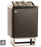 - Saunaofen Safor (4) mit anthrazitfarbenem Außenmantel, Edelstahlabdeckung und 15 kg Steinfüllung.
