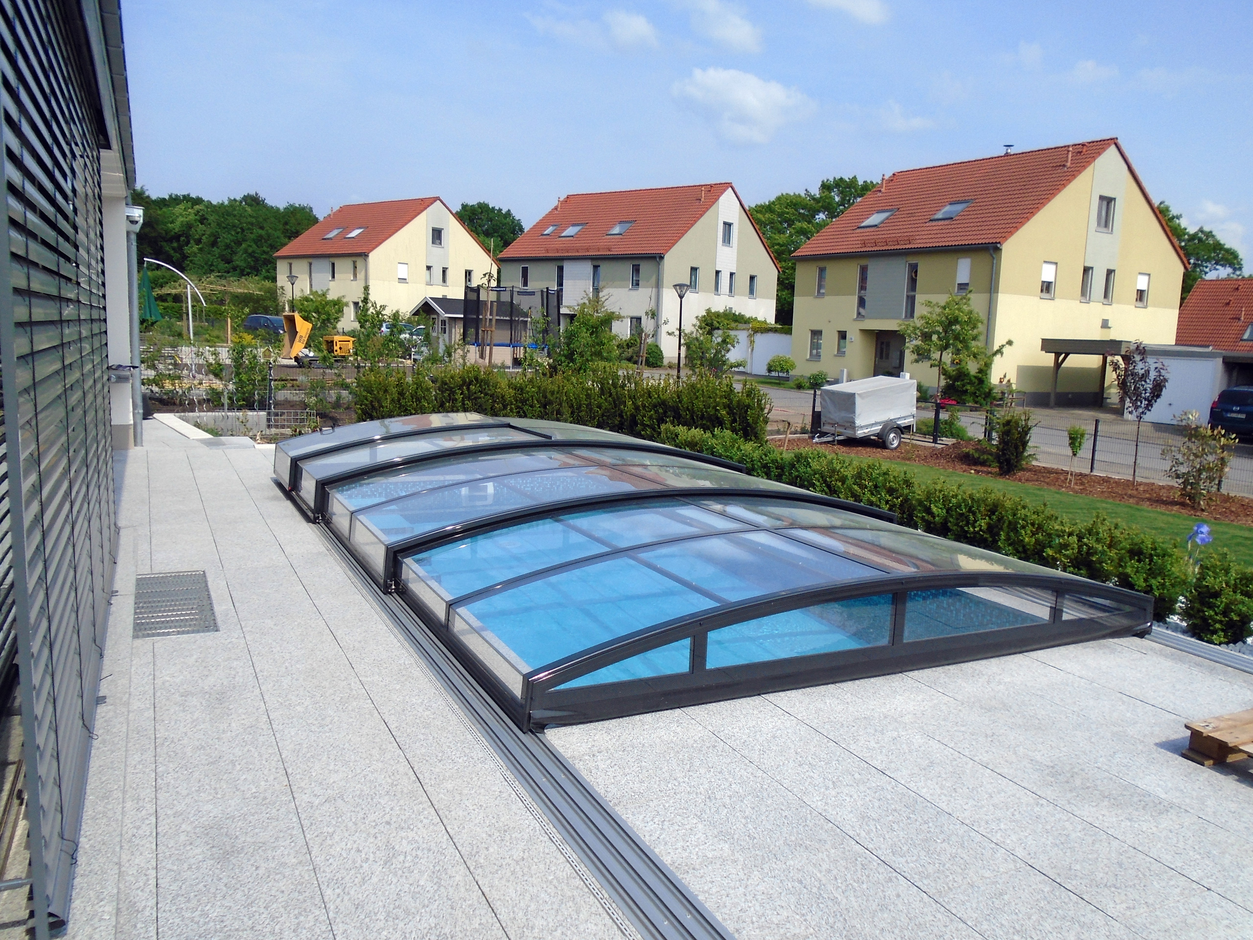 Außenbecken 3x6x1,5m mit gerade Treppe und Schwimmbadüberdachung Stuttgart