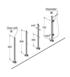 Edelstahl *V4A*, poliert, Holm ø40