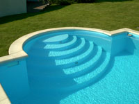 FKB PVC-Schwimmbecken kombinieren die Vorteile der bewährten PVC-hart Oberfläche mit der Möglichkeit einer kostengünstigen Serien-Produktion. Unterschiedliche Größen in Verbindung mit vier verschiedenen Treppenvarianten lassen kaum Wünsche offen. FKB PVC-Schwimmbecken überzeugen als Überlaufrinnenbecken oder als Skimmerbecken, wahlweise in hellblau oder weiß.
