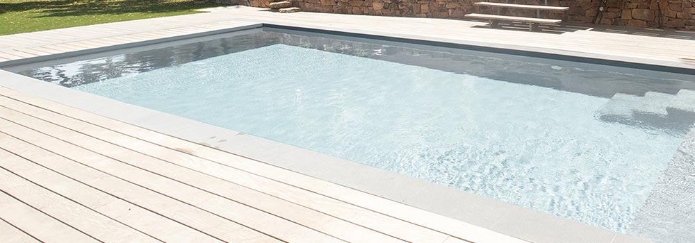 Initiale ist in 5 verschiedenen Farben erhältlich, die den Farben unserer Aquareva Einbauteile und automatischen Abdeckungen Delta entsprechen. Ob in weiß, beige, hellgrau, hellblau oder adriablau - Ihre gewebeverstärkte Folie Initiale verleiht Ihrem Pool die außergewöhnliche Ästhetik, von der Sie schon immer geträumt haben.