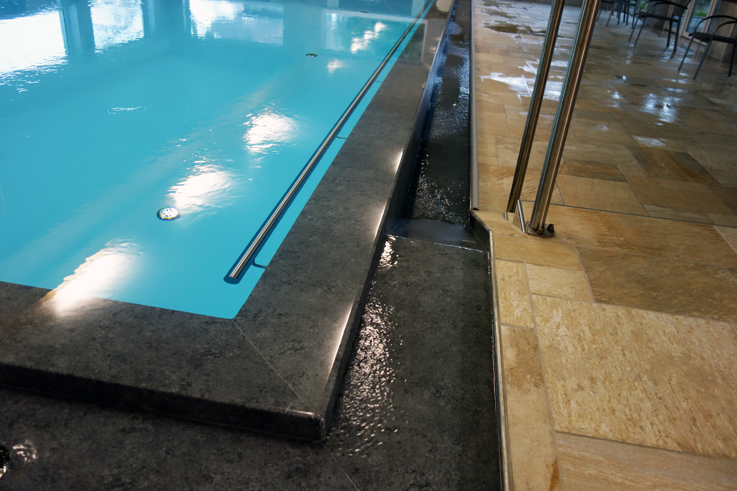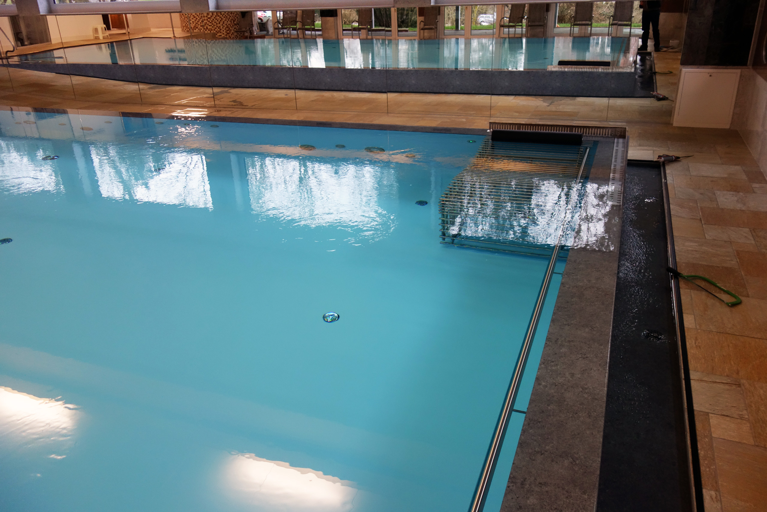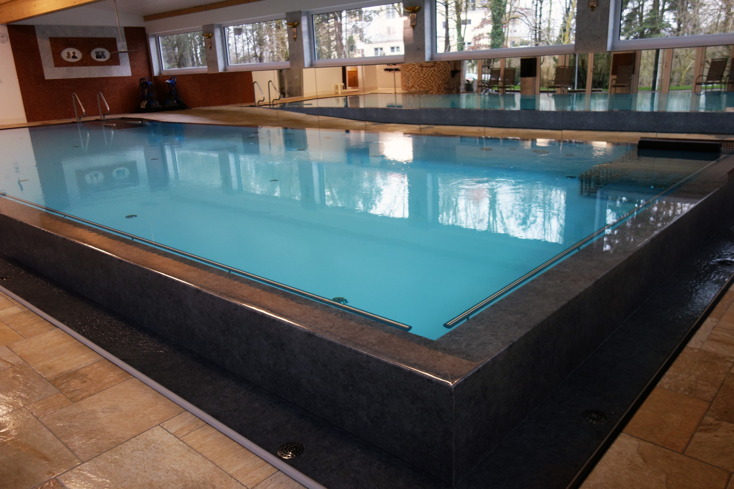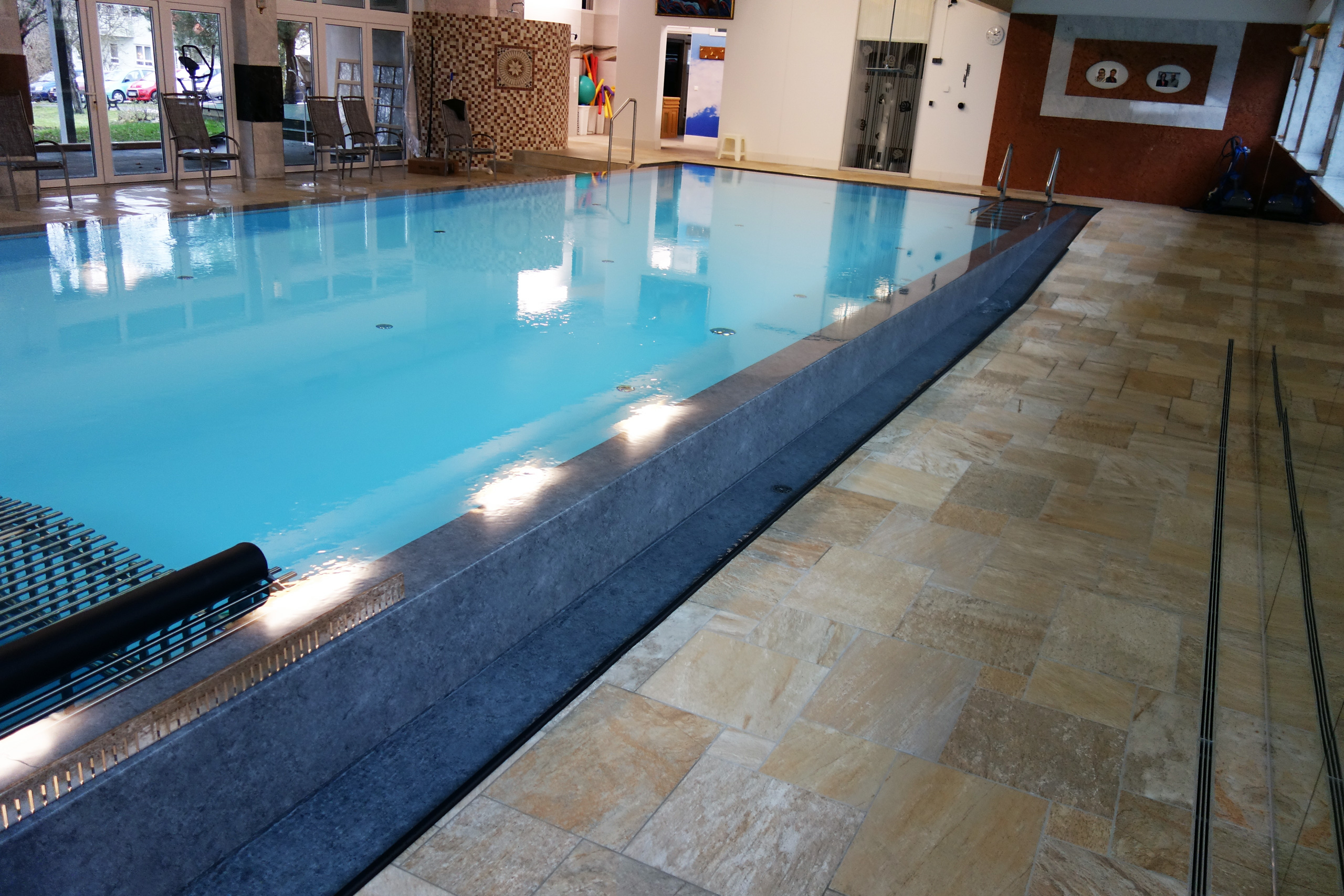 Hallenbad Überlaufbecken 5,5x14,5x1,26m mit Edelstahltreppe und Handlauf