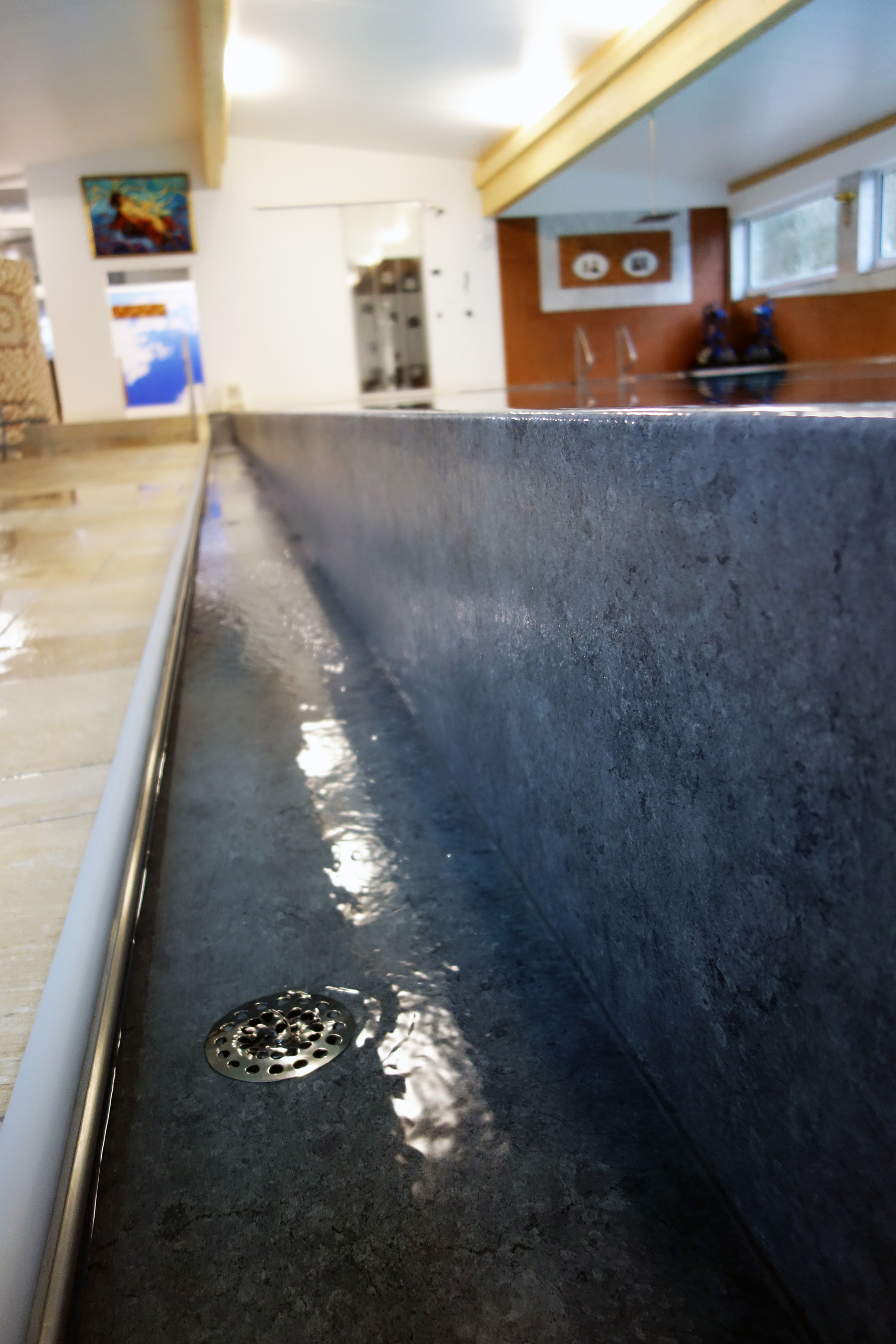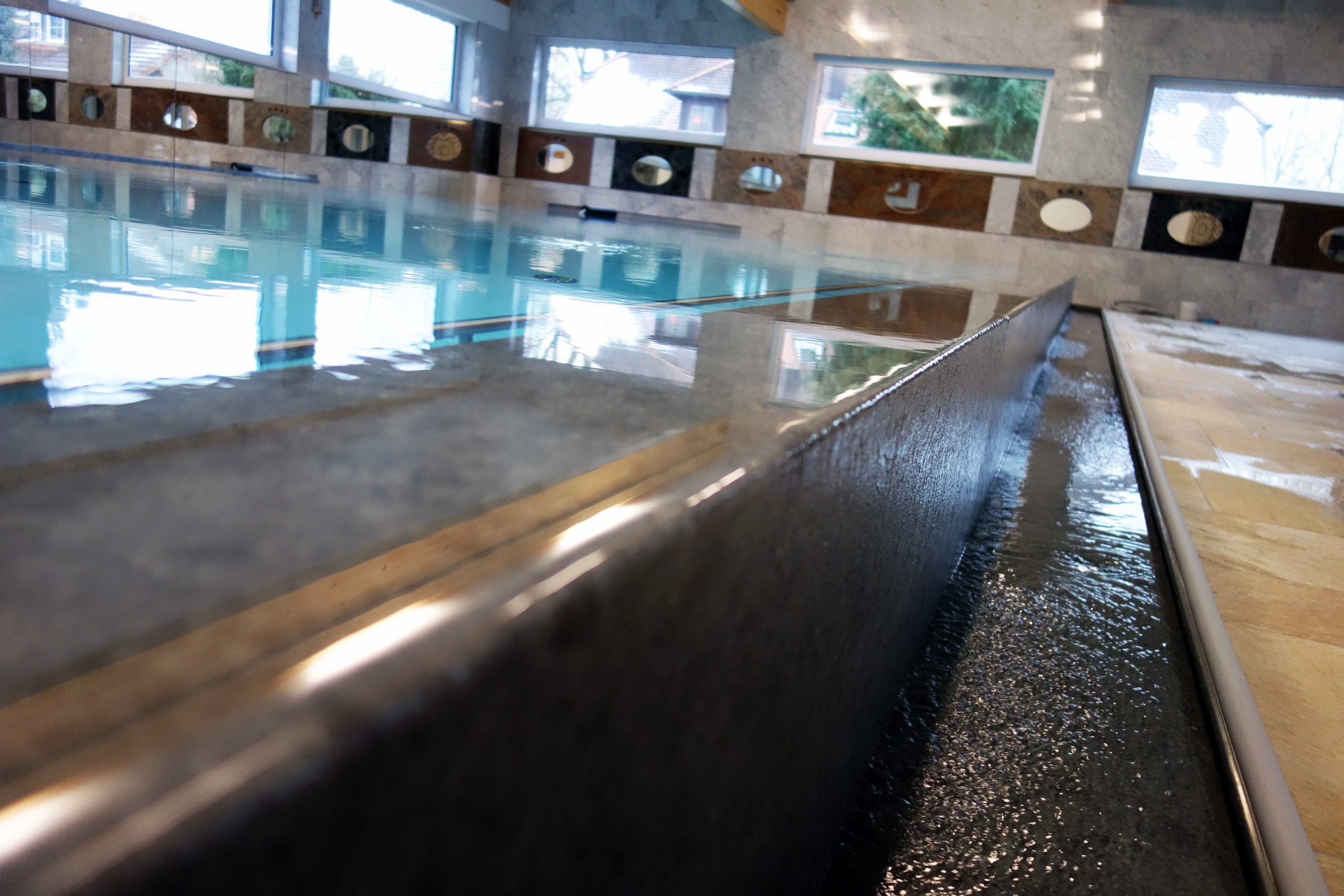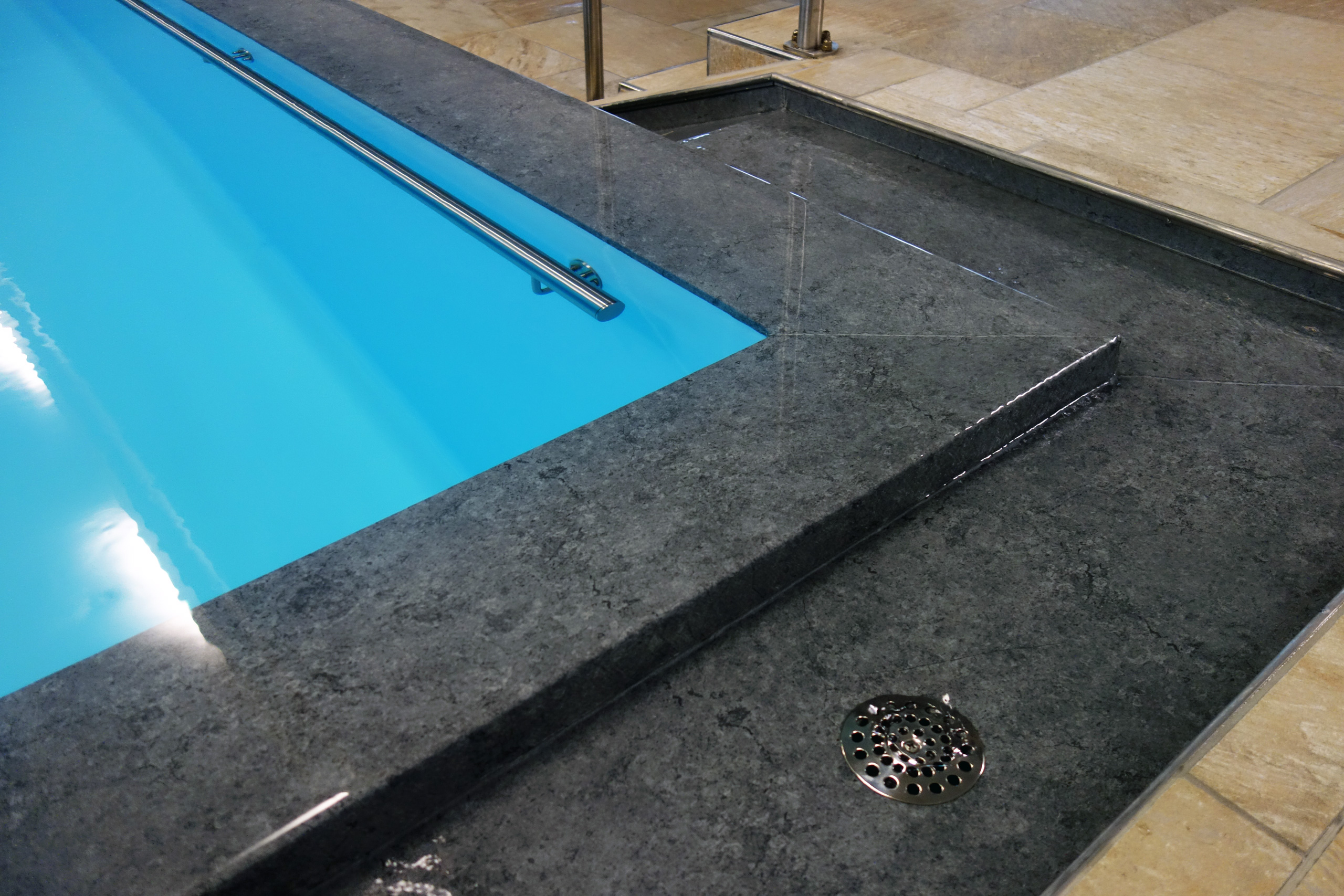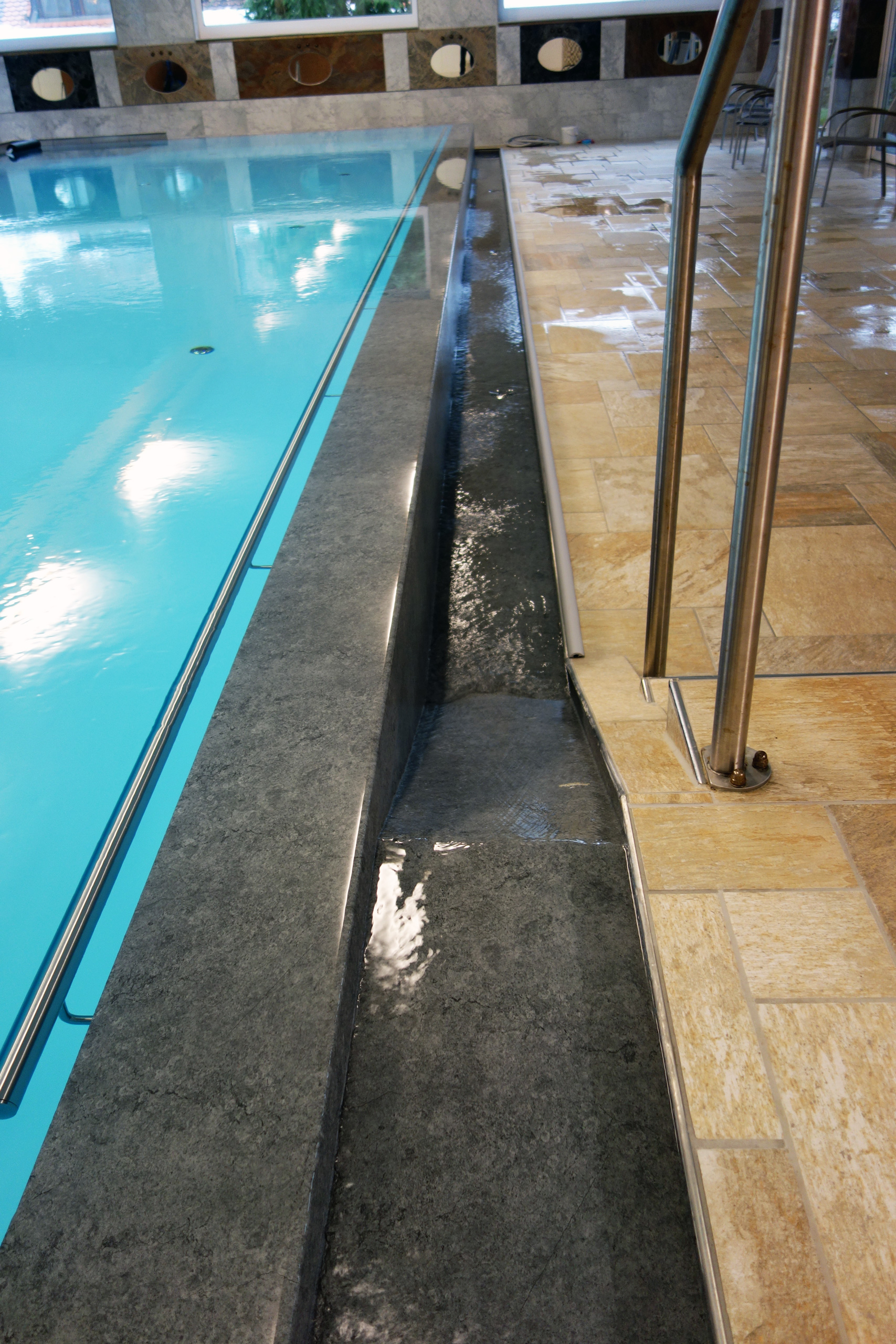 Hallenbad Überlaufbecken 5,5x14,5x1,26m mit Edelstahltreppe und Handlauf