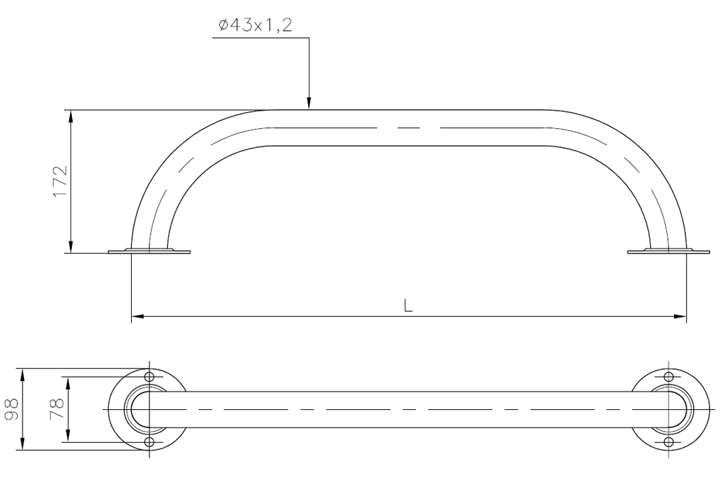 Haltegriff aus Edelstahl V4A 0,5 m