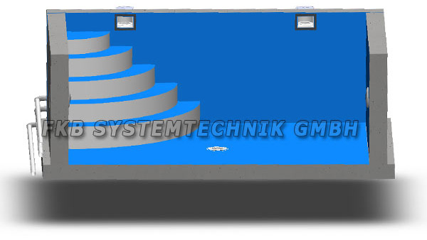 Schwimmbecken im 3D Modell mit innenliegender Treppe: