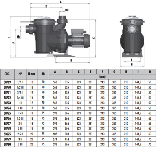 Verschraubung mit Klebemuffe saug- und druckseitig. Schutzart IP55. 1% salzwasserbeständig, selbstansaugend. Die Anschlußmaße der Victoria Plus sind zu den Modellen der Sprint und Victoria Serien identisch.