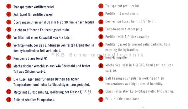 Die Victoria Pumpen brauchen dank ihres Vorfilters mit großer Kapazität (4,7 Liter) nicht so häufig gereinigt zu werden.