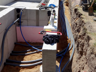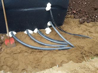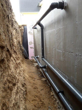 Die Dämmung an der Wand muss zwingend so angebracht werden das die Rohre vom Erdreich abgetrennt werden, um die Klebestellen und Rohre zu schützen !!!