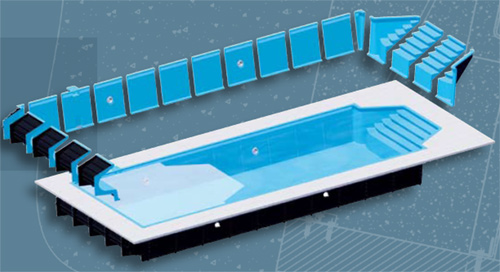 Die Elementbecken bestehen aus max. 1,5 m breiten Elementen, somit ist der Zugang zu Kellern, Hallenbädern auch für Sanierungen des Pools mit GFK einzusetzen.