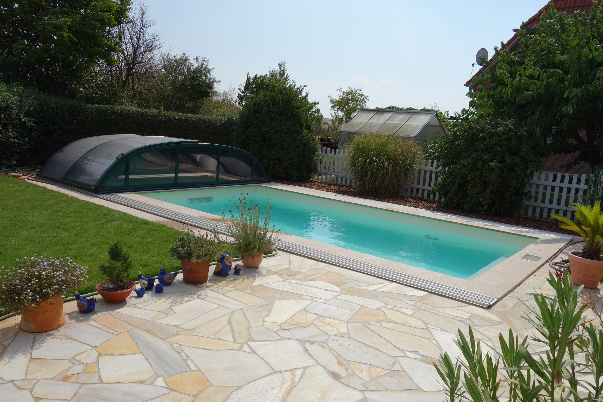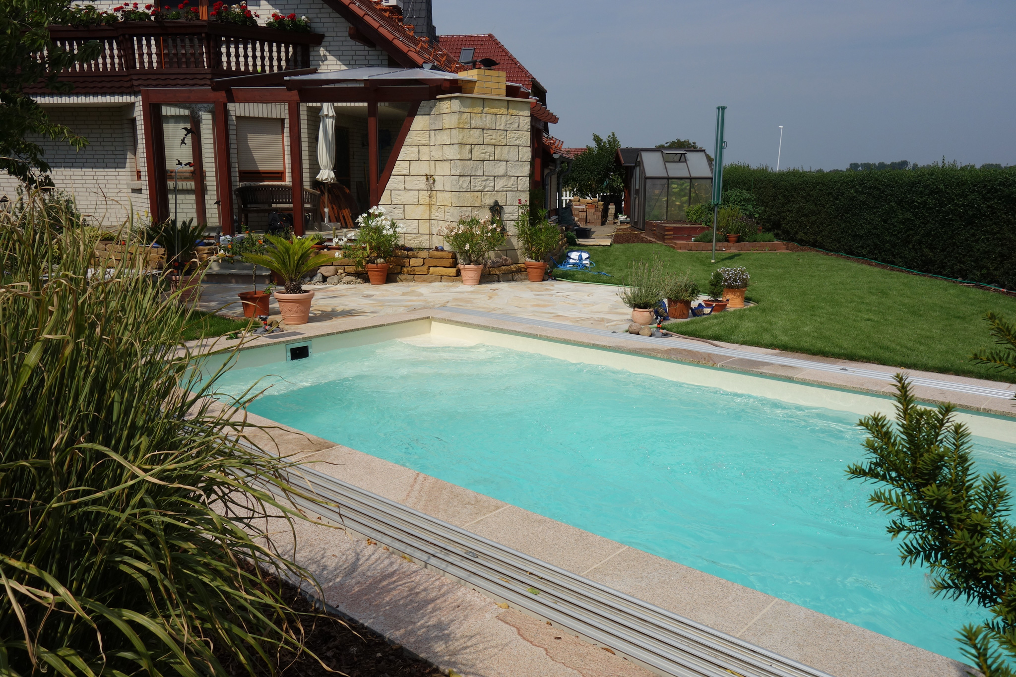 Pool 3,25x6x1,5m mit Strömungsturbine und Überdachung