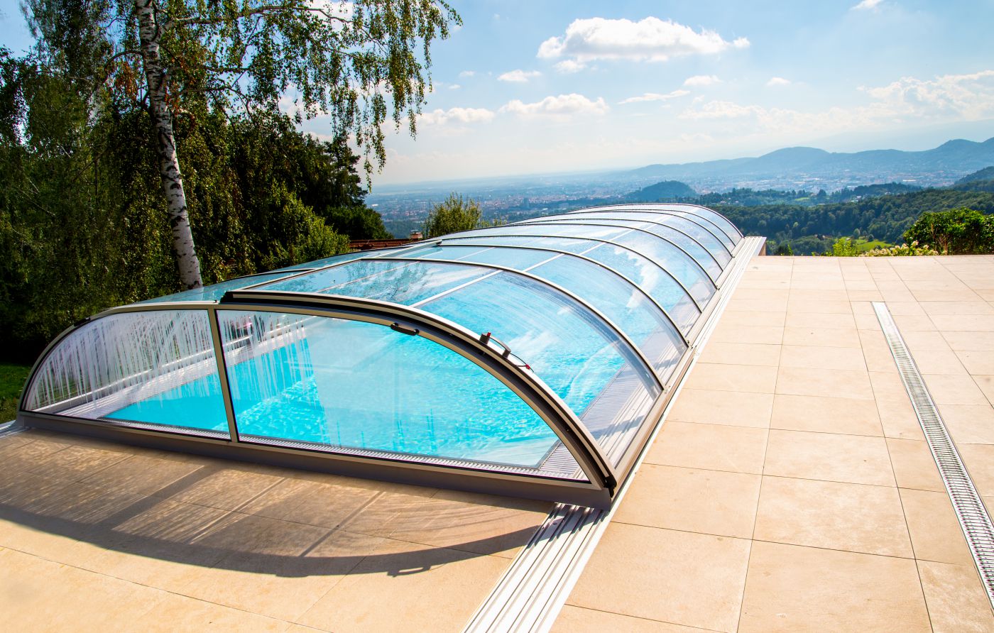 Die Poolüberdachung hilft effektiv das Wasser zu erwärmen und reduziert somit den Wärmeverlust und die Heizkosten.