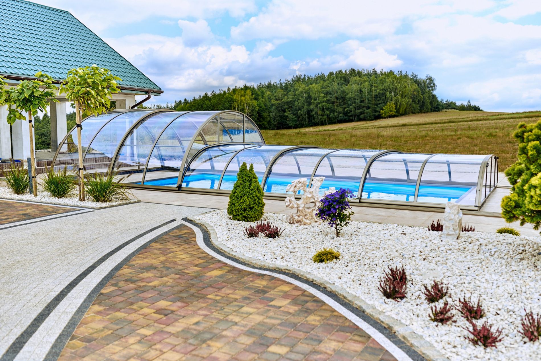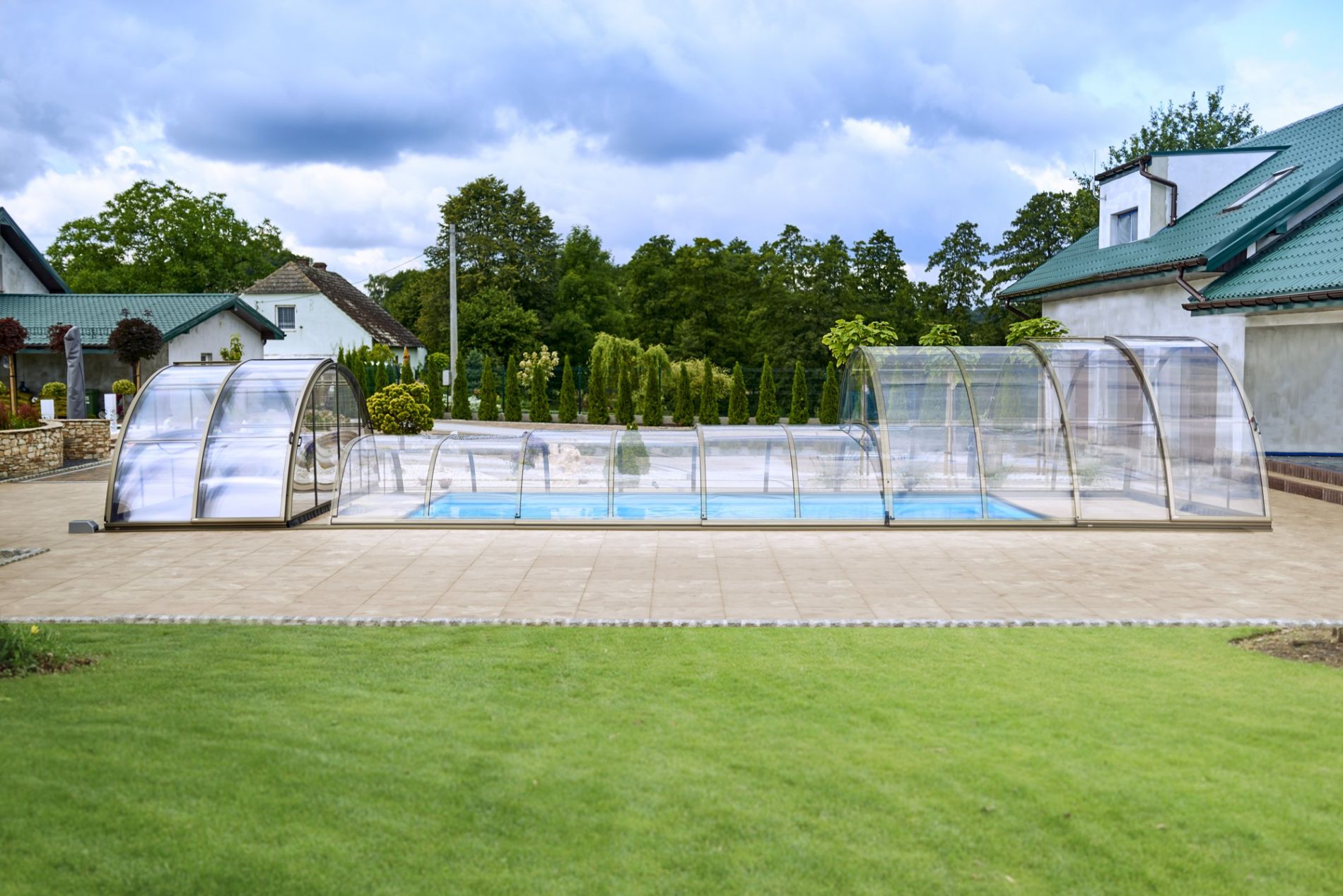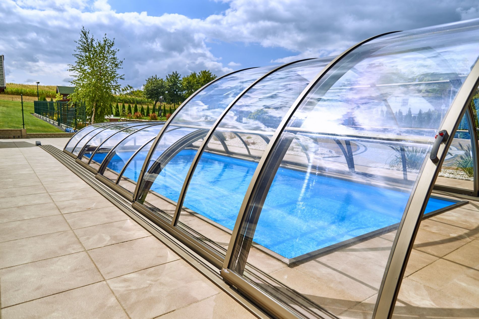 Die Poolüberdachung hilft effektiv das Wasser zu erwärmen und reduziert somit den Wärmeverlust und die Heizkosten.