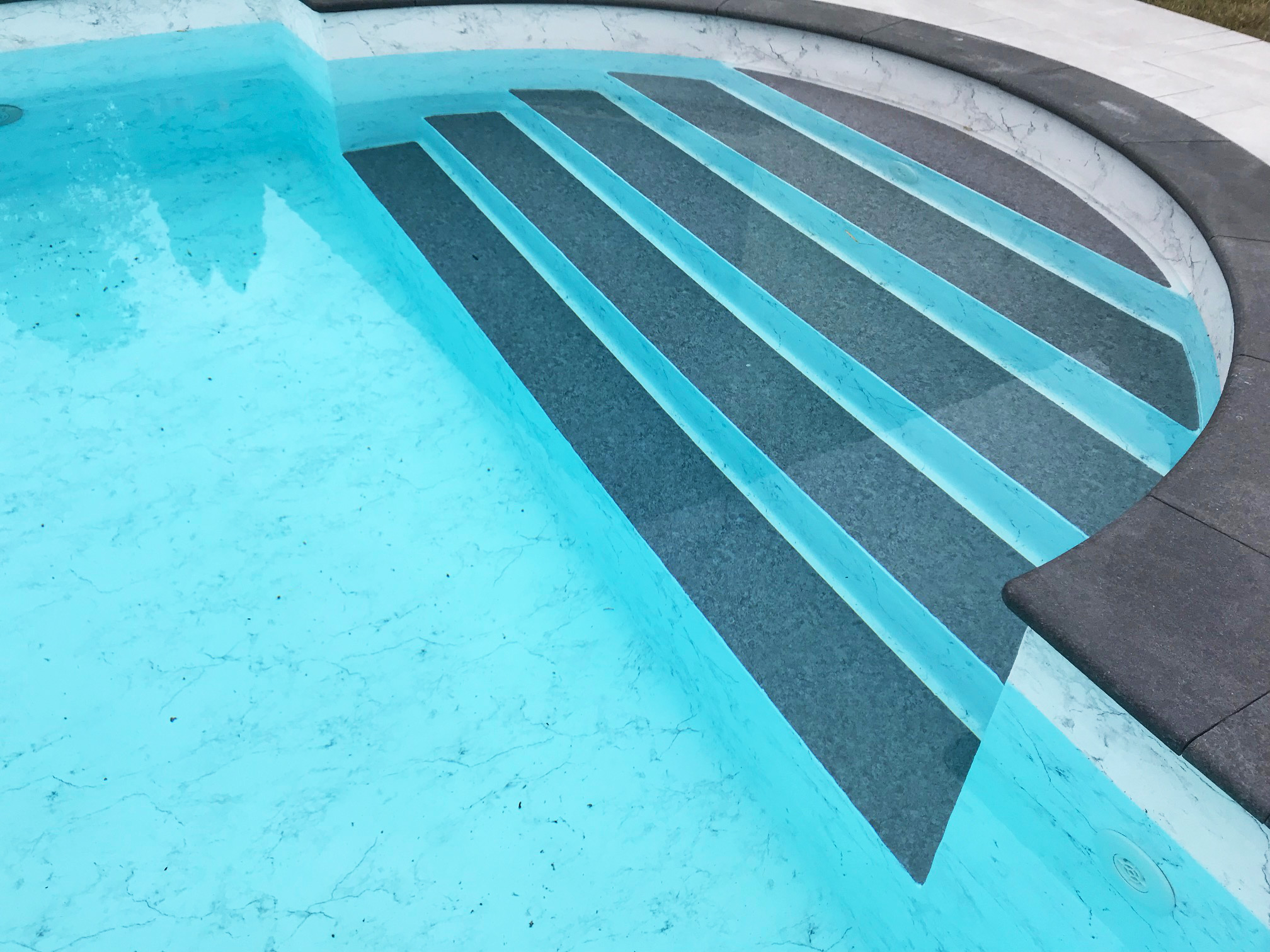 Rechteck-Pool 4x8x1,5m mit außenliegender römischer Treppe