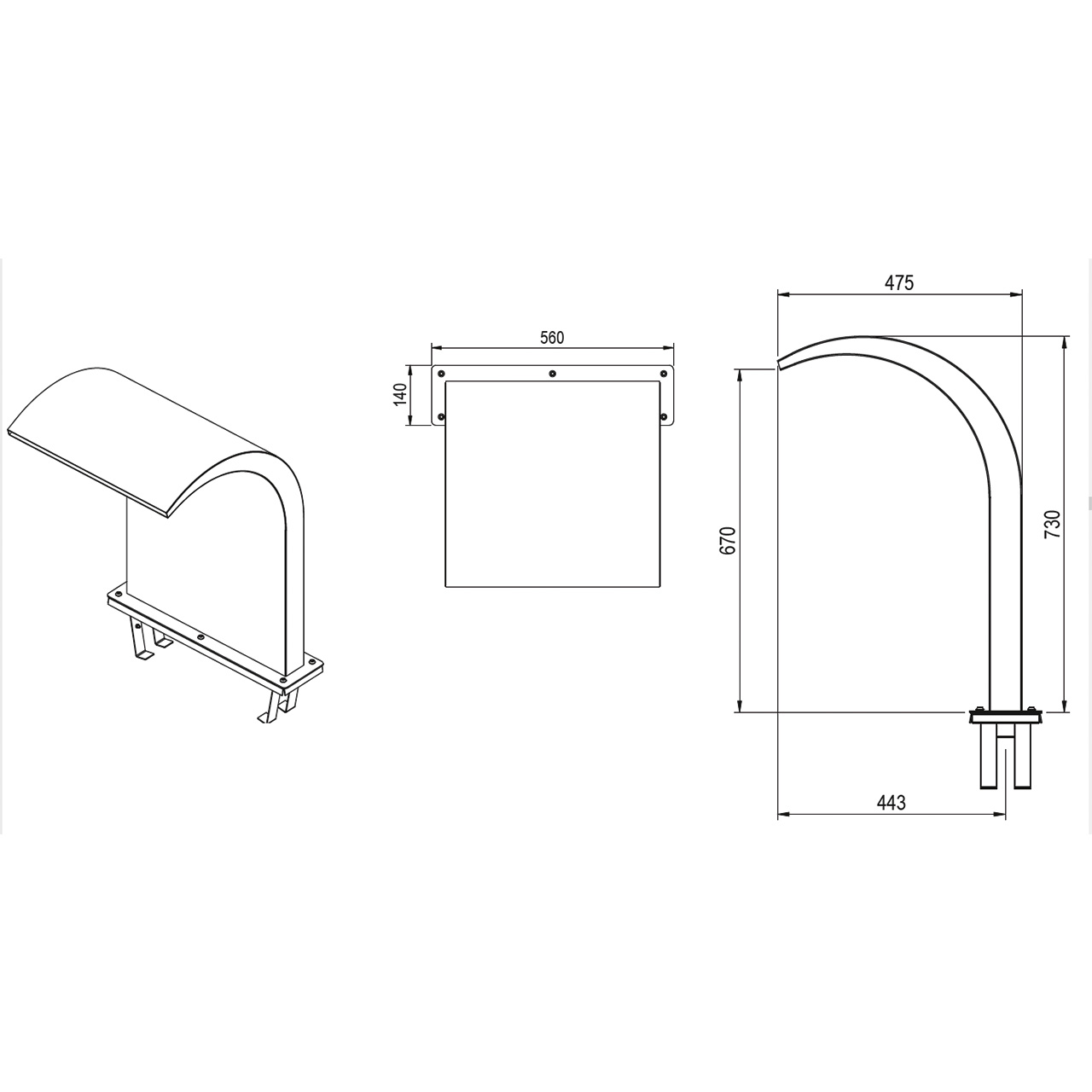 Schwalldusche aus hochglanzpoliertem Edelstahl V4A mit satin finish Effekt, Breite 500 mm, Höhe 730 mm. Anschluss 2 “, inklusive Befestigung.