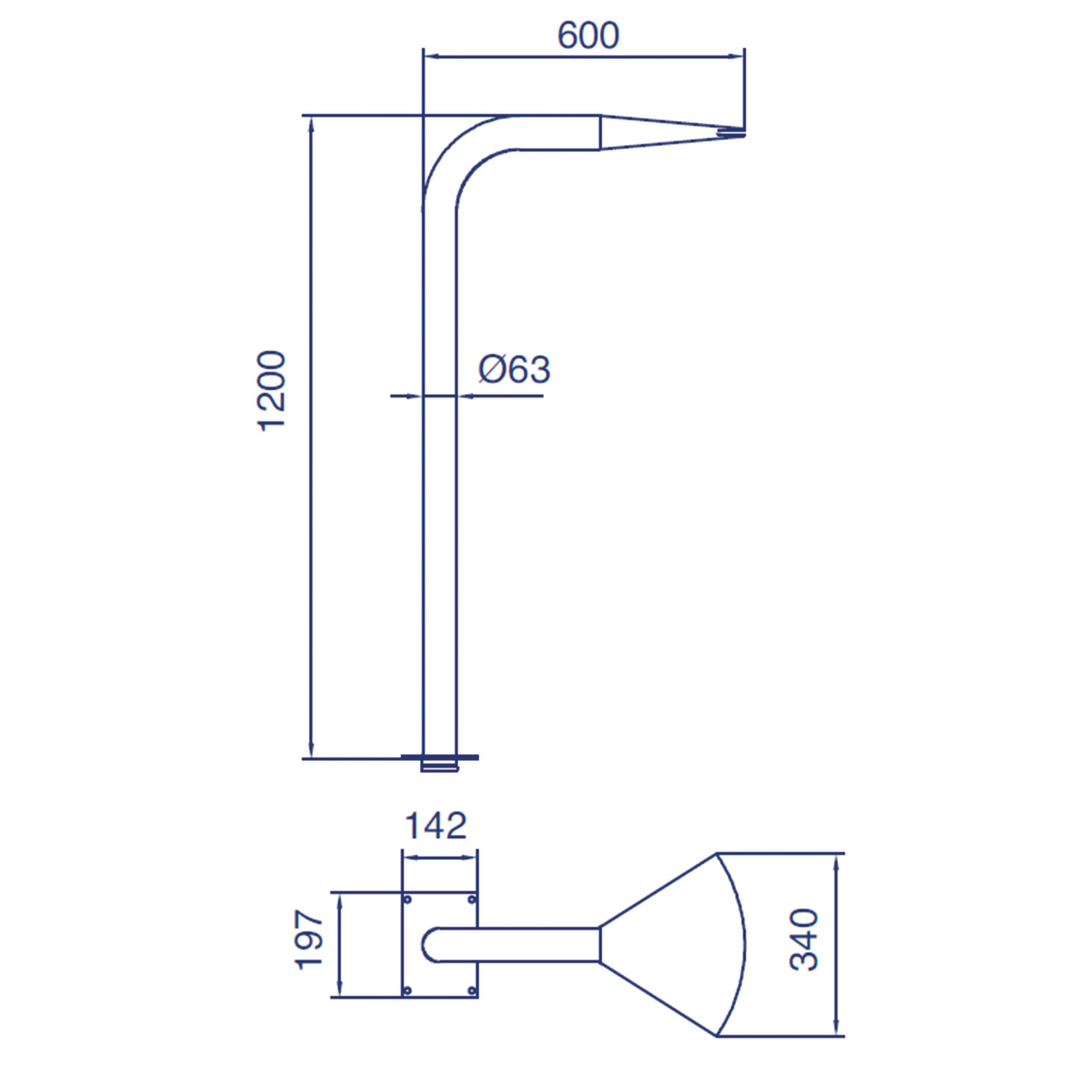 Höhe: 1,2 m. Breite 300 mm. Aus V4A.