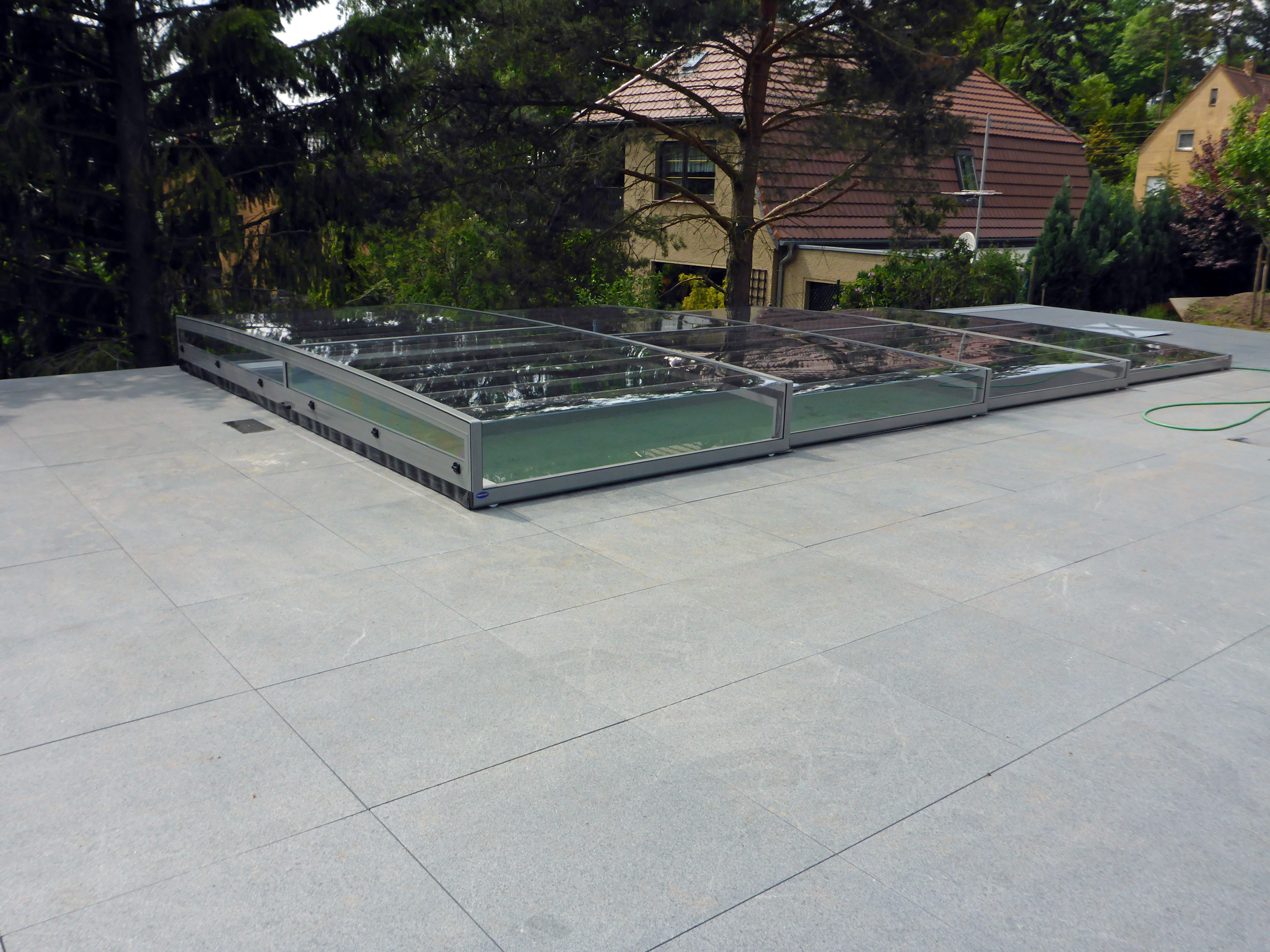 Schwimmbad 4x8x1,5m mit Ecktreppe, Podest und Pool-Überdachung Aquacomet Horizont