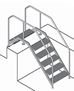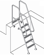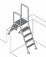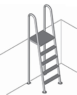 • Tritthöhe 25 cm • Stufenausladung ins Becken 55 cm • Edelstahl Grundplatte 140 x 160 cm • Gewicht (Platte + Stufen) 140 kg