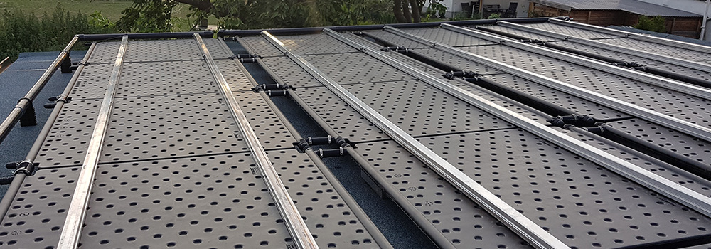 Die optimierte Wandstärke der Absorber-Platten ermöglicht einerseits einen hohen Wirkungsgrad und andererseits eine hohe Festigkeit, so dass diese sogar begehbar sind.