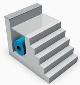 | in oben liegender Beckenverlängerung mit Wandneigung | in oben liegender Beckenverlängerung mit Wandneigung und Abdeckrost | in oben liegender Beckenverlängerung mit Wandneigung, Abdeckwand und Abdeckrost | im Bodenschacht |