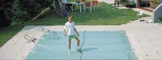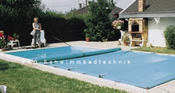 Freibadabdeckung ohne Wasserberührung, besonders wirksam als Unfall-, Schmutz- und Wärmeschutz im Zuschnitt für rechteckige Becken mit Skimmer. Abdeckung aus solar UV-stabilisierter, durchgefärbter STAMOID-Folie, getragen durch auf dem Beckenrand aufliegende, nicht sichtbare und abgeflachten Endrohren und mit Seitenabspannungen oder Quick. Wichtiger Hinweis: - Der Abstand von Strebe zu Strebe beträgt 1,30 Meter. inkl. Regenabläufe - Oberfläche glatt und pflegeleicht - Geeignet für Becken bis 6 m Breite, ab 12 m Länge 2-teilige Ausführung vorsehen - Mit Handkurbel für manuellen Betrieb (ausrüstbar auch mit Akku-Motorantrieb Servo-Roll) - Ab 56 m² mit 2 Handkurbeln serienmäßig Bitte beachten Sie: eine umlaufende Randauflage von 20 cm (25 cm bei Variante Quick), sowie ausreichend Platz für die Verspannung ! Konstruktion: Zwischen Plane und Wasser bildet sich ein isolierendes Luftpolster. Dieses schützt effizient vor Wärme- und Wasserverlusten. Zuverlässig Energie sparen Technische Spezifikationen und Ausführungen: Technik: Mit entsprechender Pflege wird Ihnen diese Qualitätsabdeckung über Jahre, gar Jahrzehnte, den Wert Ihres Schwimmbades erhalten. THERMO-SCHUTZ-ROLL ist eine günstige, kindersichere Schwimmbadabdeckung mit vielen Zusatzvorteilen. Hand- oder Motorkurbel: einfacher gehts nicht! Die glatte Abdeckungsoberfläche ist dank Witterungs- und UV-Beständigkeit bequem zu reinigen.