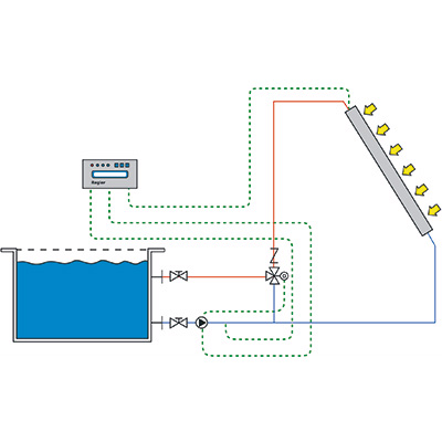 Direkte solare Erwärmung von Schwimmbadwasser im Durchlaufprinzip.