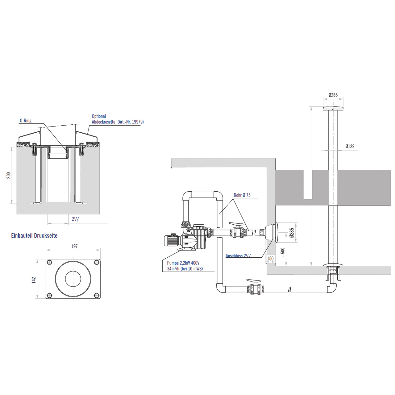 Die Montage erfolgt direkt am Beckenkopf. Für eine zuverlässige Installation wird eine fachmännische Ausführung empfohlen. - Kann ich die Wasserglocke selbst installieren?